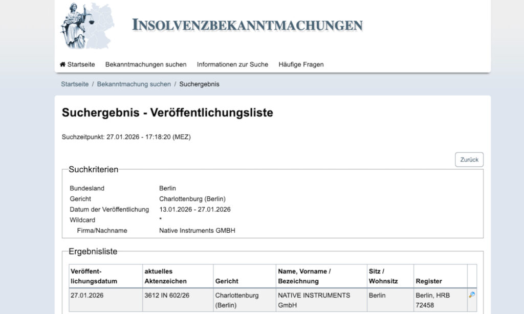 Leider beginnt das Jahr 2026 nicht sehr schön, denn die Berliner Software- und Hardware-Schmiede Native Instruments hat die Eröffnung eines Insolvenzverfahrens beantragt.